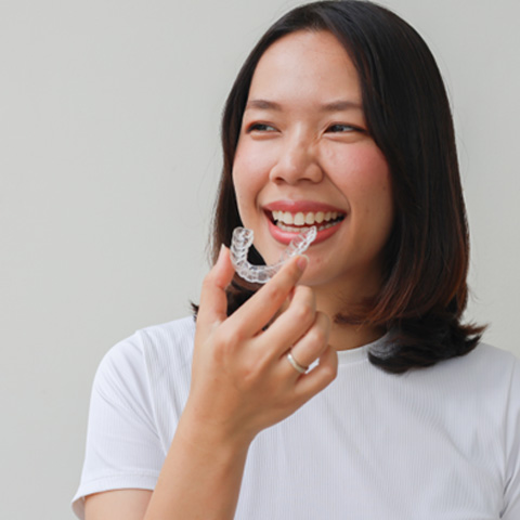 If there are hairline cracks on an aligner, you might be able to continue wearing it — just be careful when handling it so you do not worsen the damage. If an aligner is broken or warped, however, do not attempt to wear it, and don’t try to repair it by yourself. Rather, call us. We will give you guidance on your next steps. We might recommend that you wear a previous aligner until we can order a replacement for you. Or, if you were close to moving on to your next aligner, you might be able to start wearing it a few days early.